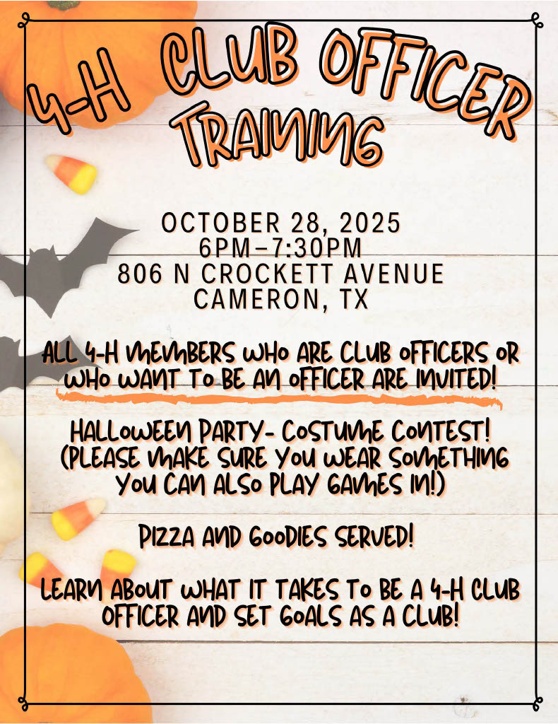 Next Milam County 4-H County Council Meeting: October 28, 2025