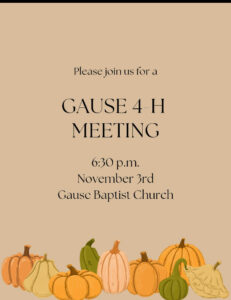 Come check out the Gause 4-H Club! We invite all Gause and Milano students. Ages 5 to 18 are welcome.