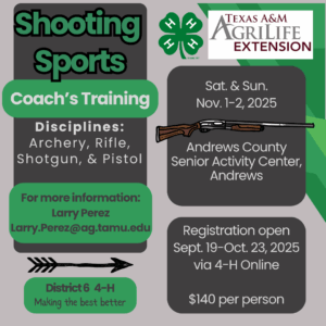 Upcoming District 8 Shooting Sports Coach Training. Two opportunities to train: